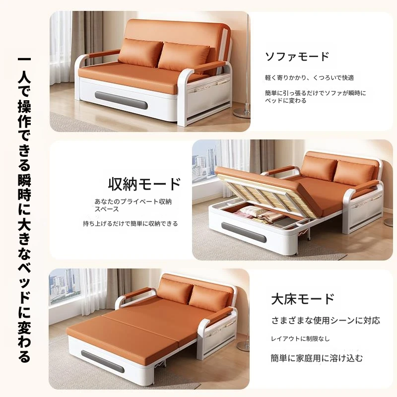 省スペース!簡単に変形するソファベッド - 多機能収納付き、スライド式で小さなリビングにも最適なダブル&シングル対応、折りたたみ可能!