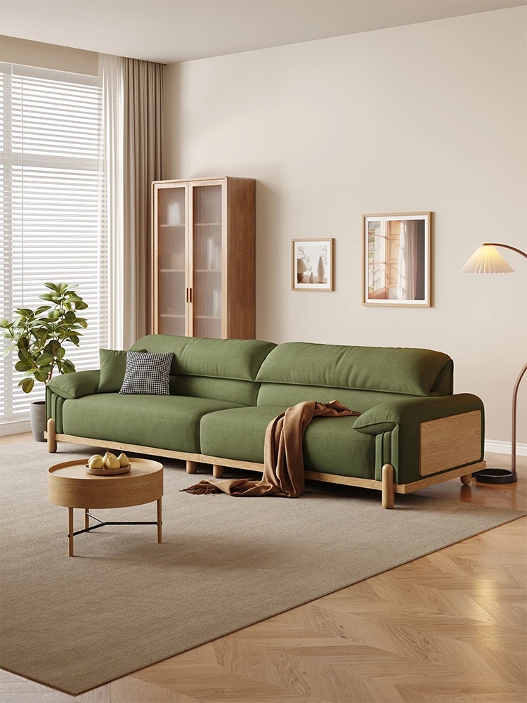 国補新作!おしゃれなアボカドカラーの布製ソファ、猫の爪にも安心。モダンでシンプルなデザイン、小さな部屋にもぴったりの木製家具。快適なリビング空間を実現!
