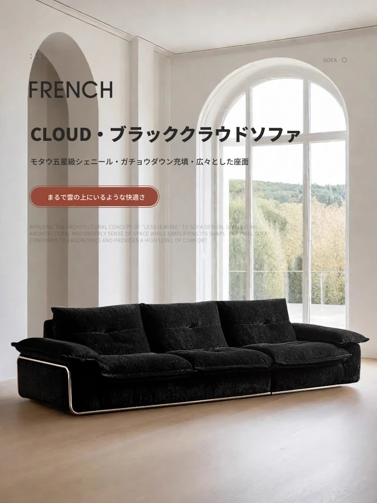 フランス風クリームテクスチャーの小型雲型ソファ - 現代的なミニマリズムとレトロなデザインが融合した、柔らかなスノーフレークフリース製のリビングルーム用カバーリングソファ。快適さとスタイルを両立させた一品です!